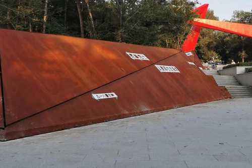 耐候鋼板因其獨特的質(zhì)感現(xiàn)在已經(jīng)成熟的運用到景觀設(shè)計、幕墻設(shè)計、建筑設(shè)計等中成為現(xiàn)代設(shè)計不可或缺的設(shè)計元素。耐候鋼表面是一層銹紅色物質(zhì),摸上去十分粗糙,質(zhì)感十分特殊,同時耐候鋼具有曹強的形體塑造能力,能創(chuàng)造出極為簡潔的當代幾何造型。耐候鋼板會隨著時間而發(fā)生變化,其色彩受環(huán)境、氣候影響變化較大,放置很久之后容易從鮮亮的紅褐色變?yōu)榘档纳詈稚S著時光的老化,使得充滿美感的耐候鋼具有獨特的色彩和質(zhì)感。